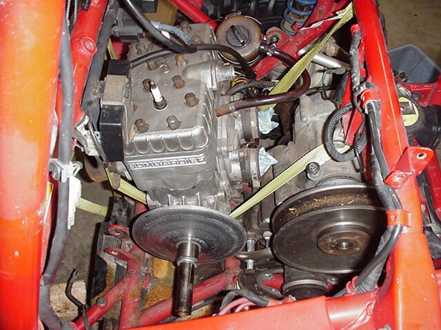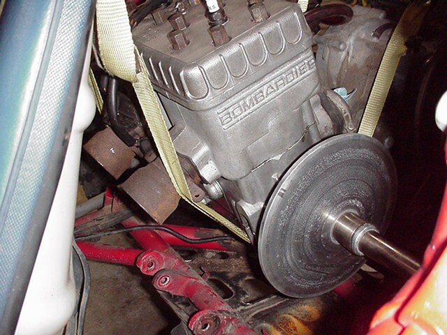 After suffering another bottom end bearing failure in my Honda engine I decided to try something a little different by installing a sled engine, the goal is to install without butchering up the Pilot, make it all bolt in so in the future if I wanted to go back to the Honda engine going back would be a bolt in affair and in a matter of hours I could swap back, so the whole conversion will be bolt in. The first step is to locate the Engine I made up a Aluminum bar with the stock center to center distance and using shims got the proper offset, this will help me maintain the proper center to center distances when locating the Engine, their will be no belt problems by getting this right, I also can keep using the same belts I have been using, the stock Honda belt and the belts from 4x4 Tuff for the Pilot. This is a rotary engine so if I use regular carbs the engine will need to be mounted high so the carbs can clear the transmission, having the engine mounted high makes the exhaust a difficult task because it is so close to the seat, with the engine up I can fabricate a fuel tank that will set below the engine.
