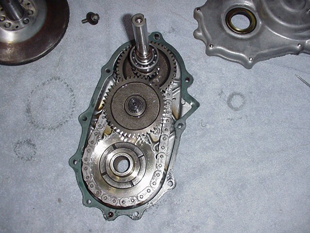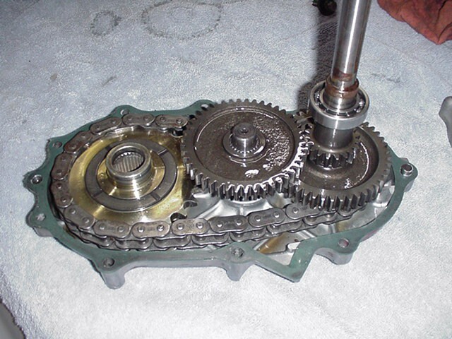 All these gears will be removed, the gaskets and seals removed, everything washed, new seals and chain installed, there is no visible wear on this transmissions internals other than the chain found so far. More on transmissions later