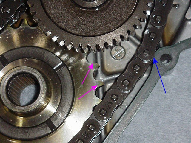 A close up, Inspect the sprocket teeth (pink arrows)