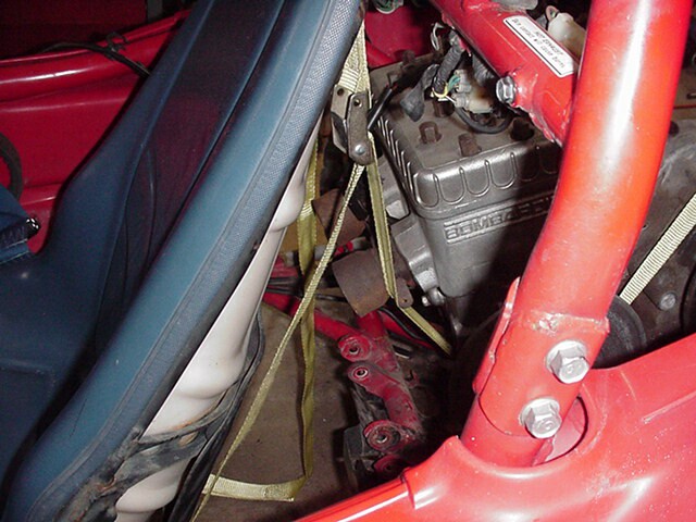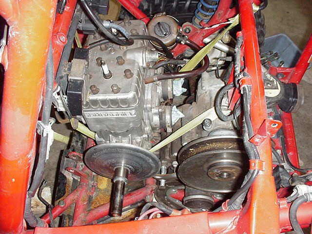 After suffering another bottom end bearing failure in my Honda engine I decided to try something a little different by installing a sled engine, the goal is to install without butchering up the Pilot, make it all bolt in so in the future if I wanted to go back to the Honda engine going back would be a bolt in affair and in a matter of hours I could swap back, so the whole conversion will be bolt in. The first step is to locate the Engine I made up a Aluminum bar with the stock center to center distance and using shims got the proper offset, this will help me maintain the proper center to center distances when locating the Engine, their will be no belt problems by getting this right, I also can keep using the same belts I have been using, the stock Honda belt and the belts from 4x4 Tuff for the Pilot. This is a rotary engine so if I use regular carbs the engine will need to be mounted high so the carbs can clear the transmission, having the engine mounted high makes the exhaust a difficult task because it is so close to the seat, with the engine up I can fabricate a fuel tank that will set below the engine.