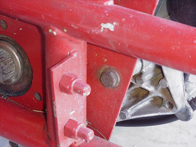 A good friend of mine (Don) stopped over to take a look at my latest addition to my toy collection, Don raced 250's for years and has seen about all the modifications done to 250's and knows about all the common problems and fixes, below you can see where the transmission case is cracked around the mounting bolt, this happen because one of the support mounts were not installed that helps support the cases See the rust around this bolt, that is a good sign that the case was flexing in the frame, this will happen no mater how tight you tighten the bolts, when the clutches engage they are trying to pull the engine and transmission together.