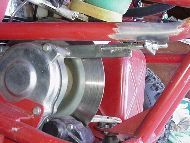 Don suggested adding this mount, it starts at the 2 top transmission bolts, if you look at a stock frame 250 these are used and mounted to the frame.