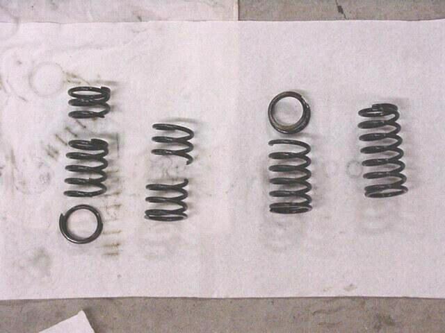 3 out of 4 ain't bad is it? BTW in case you cant tell the one on the far right still is good. My guess is when I had the rebound dampening wrong the top out spring was taking one hell of a beating and going into coil bind, I think I have that problem solved now by changing the valve stacks and switching to a 15 weight oil.Rear res, over all length 7" inside diameter 1.720 " Front's are the same except they are 5-1/2" long