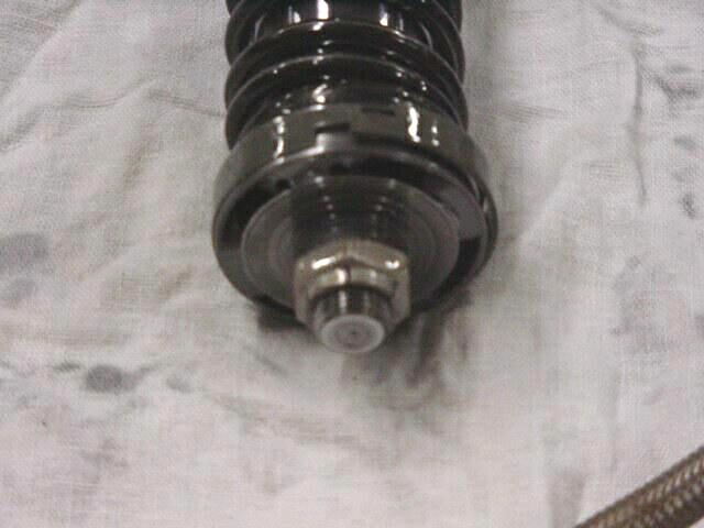You can see the broke top out spring, what the spring does is every time you extend the shock it will act as a cushion when the shock is fully extended, with me driving my Pilot with the wrong rebound dampening every time the tires left the ground they would make the spring compress to the point where they would bind, I changed the rebound valve stack for more rebound and went to a 15 weight oil.
