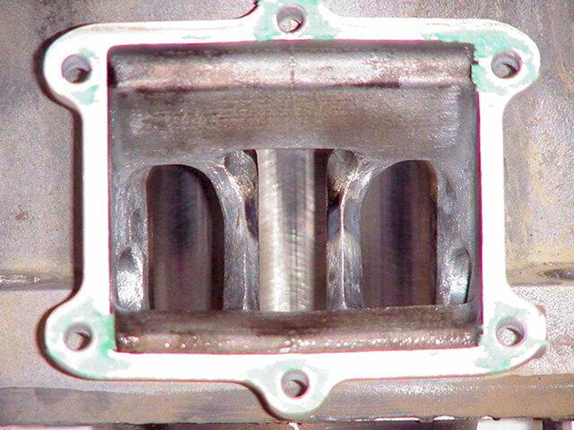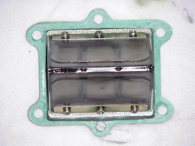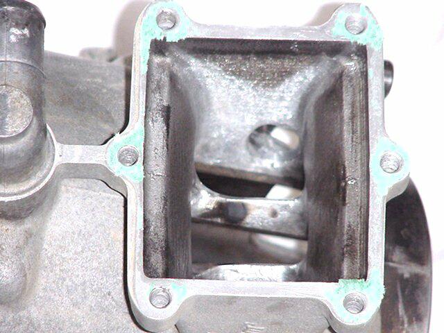 You can see the dark burn marks on the intake bridge See the shadow of the reed cage "V" on the sides of the intake? The black or gray area is the soot starting to build up.
