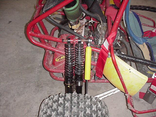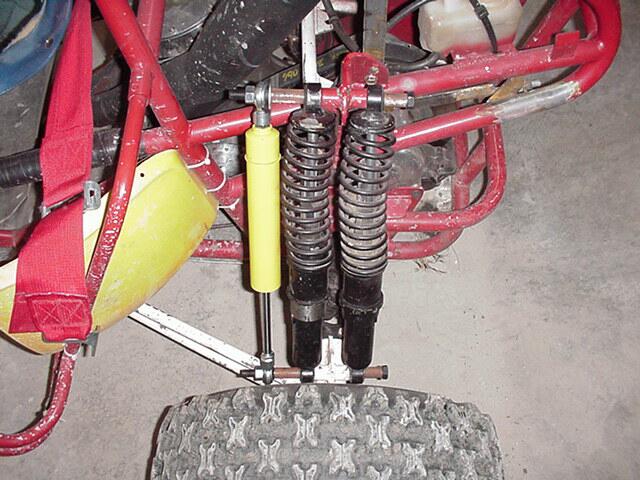 The rear suspension on the challenger uses a pretty lame shock after removing them and doing a inspection I discovered they have no rebound dampening, full details here I noticed when my kid was riding in the back yard and going over small jumps not getting any air but almost to the point if getting some the suspension would compress all the way then unload at a excessive rate (not enough spring rate, not enough rebound dampening) so I contacted Redrider to see if he could offer a shock that I could add just to control dampening he sent me 2 Blistine shocks with ?? compression and ?? rebound dampening I also had him send the adjustable spring kits in case I want to add springs to these shocks at a later date, the hot setup would be to get springs and eliminate one or both shocks all together but since the spacers added to the shafts of the original shocks act as bump stops and limit the suspensions travel I don't see it happening.Naturally when I went to buy longer bolts they didn't have the size I needed so I had to fabricate extra spacers to acomidate the longer than needed bolts, I am in the testing phase once I get the shocks dialed in I will order the correct length bolts and pain the spacers.