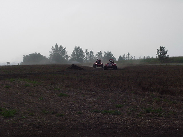 8-26-00 at Pilotcat's house near Watertown SD. Pilotcat made a track for us to ride on but due to the lack of rain the track was a bit dusty, we tried using Pilotcat's water truck to water the track but that only lasted about 4 lap's then back to the dust :-( Pilotcat and Pilotman taking a break Pilotcat and Pilotman