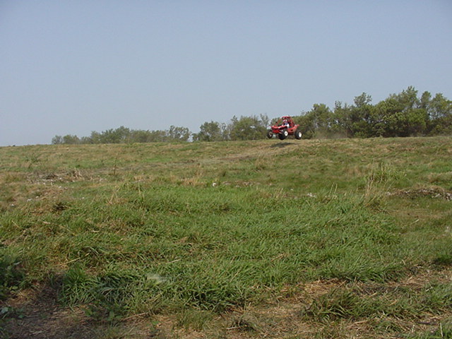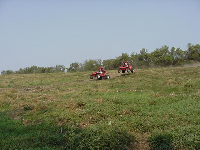 Day 2 we moved over to a pasture with rolling hills and laid out a new track. Pilotcat and Pilotman going over a big down hill jump WOT