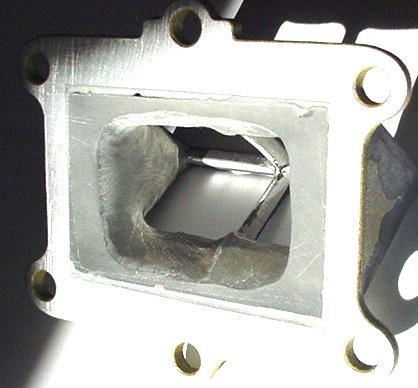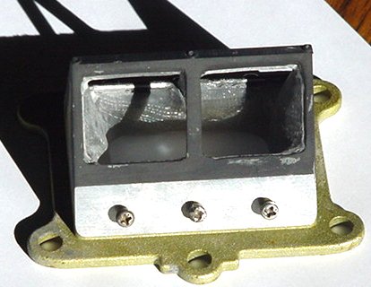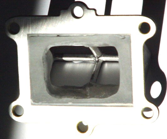 This page will load slow, use this time to go get something to drink :-) These are just more pictures I took of the cage, remember at this stage it is not complete, these pictures will not interest most of you, it will how ever be useful to people that are really interested in making their engine perform better, modifications like this and close attention to detail are what makes engines stand out and perform better than the ones where guys just bought the go faster parts and bolted them on. Ever see a guy replace his reeds and just put the cage back in? Why not spend a hour modifying your reed cage to perform better and wile you have the manifold off match its mating surfaces to the reed cage stuffer and match the carb to the intake manifold removing the flow restrictions that are built into the part and not normally removed during normal production processes, you do not need a ported cylinder to increase power in a stock engine, just cleaning up the casting flaws and matching ports can make a large increase in power but you also need to start removing the restrictions starting at the air box and all the way through the engine and exhaust![]()