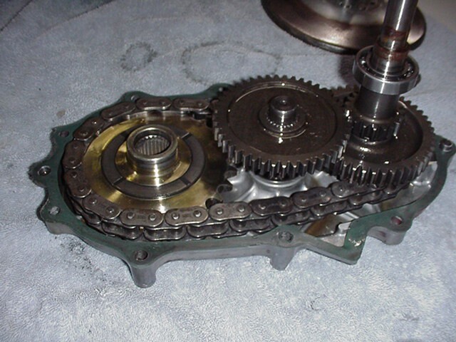 All these gears will be removed, the gaskets and seals removed, everything washed, new seals and chain installed, there is no visible wear on this transmissions internals other than the chain found so far. More on transmissions later