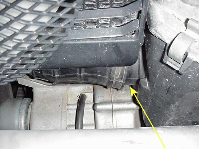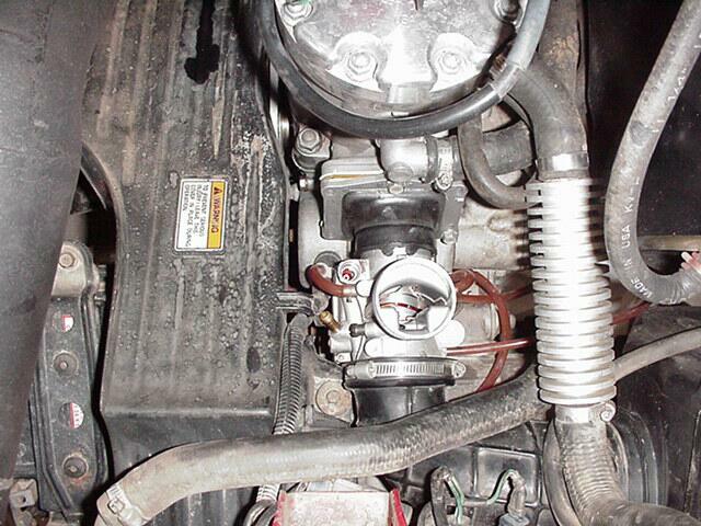 Since the manifold is straight you will come up short at the air box connection, I will tighten the carb at the manifold connection then take a bungee cord and pull the carb over to the right and make the air box connection. (Yellow arrow)