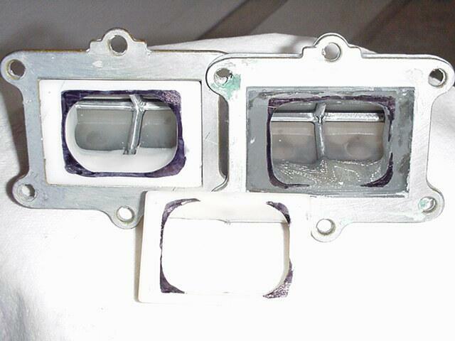 Below left is the material needed to be remove from the stuffer on the 88 CR250 reed cage, middle is a stock 89 Pilot stuffer, right is a 90 Pilot reed cage with my modified stuffer, the stock 90 Pilot reed cage stuffer is almost exactly like the middle stuffer.