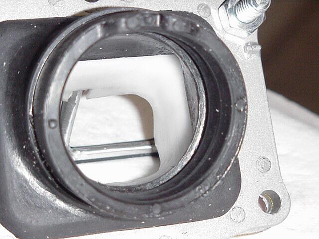If the stuffer is not mated to the new manifold with a dremel tool or file you will create a lot of turbulence and more than likely loose power using the straight manifold, here is 2 after dremel pictures the match is almost perfect.
