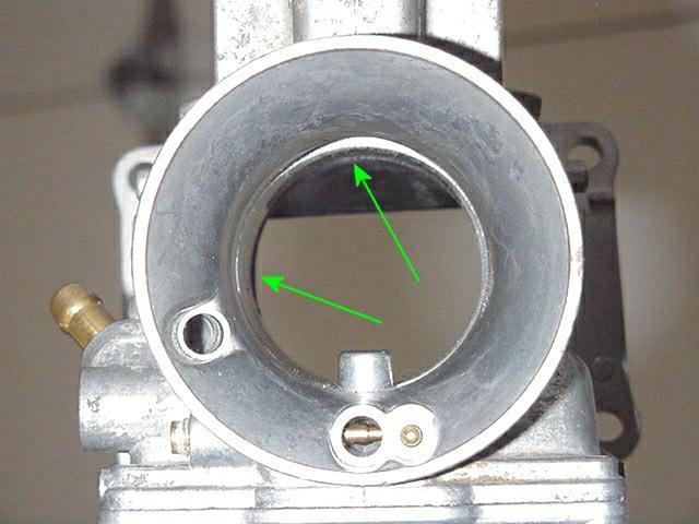 Ok now we have the manifold matching the reed cage time to make the manifold match the carb, the 2 green arrows point to the places it needs a little flow matching, there is no fight making the 39mm carb fit into the manifold like the stock Pilot manifold.