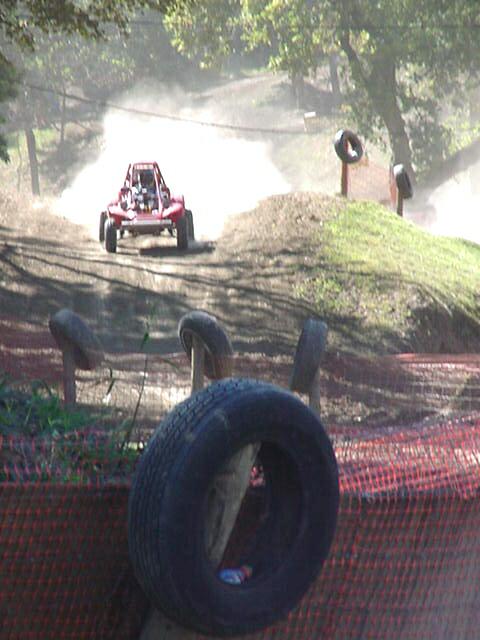 On my first lap it didnt take me long to figure out something was wrong my front left suspension was bottoming out bad, after getting back to the pit area I put my guage on the shock and sure enough it was low on nitrogen, wouldnt you know I take my nitrogen tank with me every where I go but decided to leave it home this time, lucky for me Cowboy had his tank with him and loaned me some nitrogen, Thanks Cowboy I owe you one!Me coming around for a big WOT sweeper