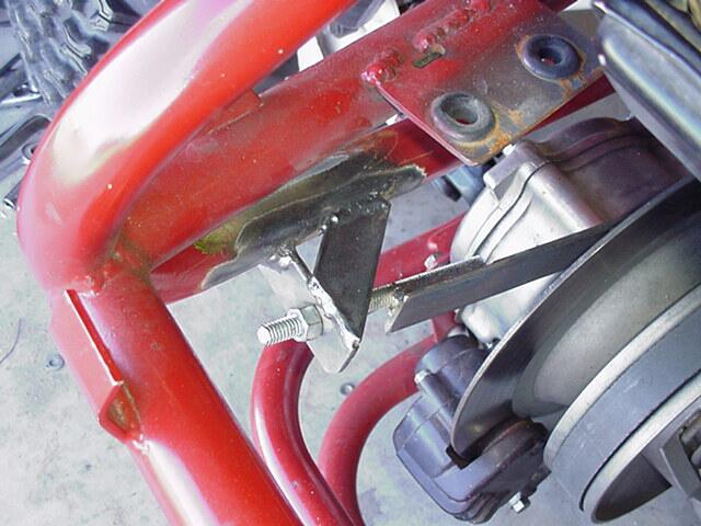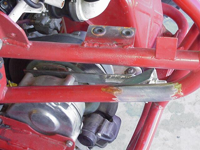 Don suggested adding this mount, it starts at the 2 top transmission bolts, if you look at a stock frame 250 these are used and mounted to the frame.