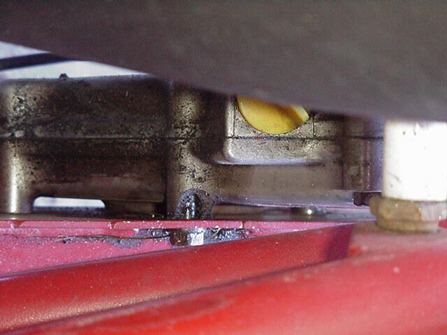 A good friend of mine (Don) stopped over to take a look at my latest addition to my toy collection, Don raced 250's for years and has seen about all the modifications done to 250's and knows about all the common problems and fixes, below you can see where the transmission case is cracked around the mounting bolt, this happen because one of the support mounts were not installed that helps support the cases See the rust around this bolt, that is a good sign that the case was flexing in the frame, this will happen no mater how tight you tighten the bolts, when the clutches engage they are trying to pull the engine and transmission together.
