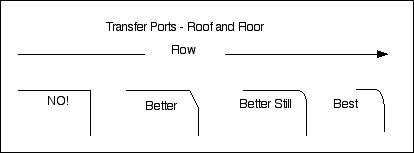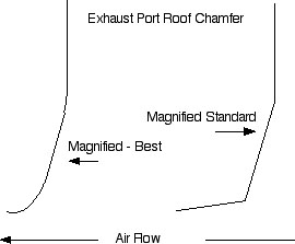 Here are a couple of drawing of good and not so good chamfers. The first one is of transfer ports - with mixture flowing out of them. The greatest amount of mixture will pass through a transfer port, in less time, with less interference with the tunnel itself and the piston if its contour is like the 'Best' picture.