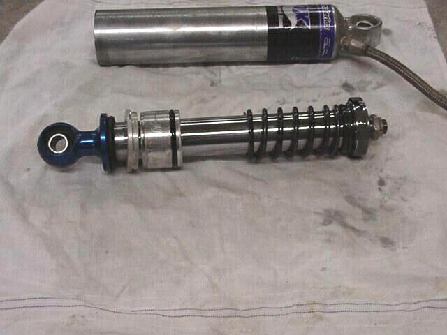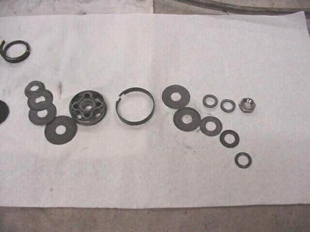 Here it is taken apart everything is laying in order Notice the broken top out spring :-( I figure it was stressed when I had the rebound setup wrong and could feel the shock knocking when the front tires left the ground.