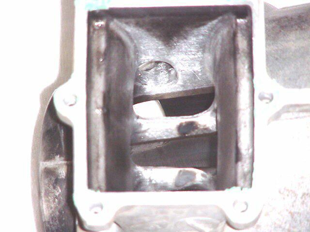 You can see the dark burn marks on the intake bridge See the shadow of the reed cage "V" on the sides of the intake? The black or gray area is the soot starting to build up.