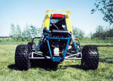Here is some information ATV Racing sent me on the Drakart. I am trying to get more information and will update as soon as I do "It has 102 hp in stock configuration, runs regular pump gas and has a speed of 100 mph it runs 14" of front wheel travel and 16" in the back. They come in red, yellow, blue, and black. Retailing at 17 G's. Many options available"See bottom of page