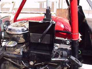 The battery box mounted, with the starter solenoid screwed on top. I would like this mounted in a better place, but I can't find one. |