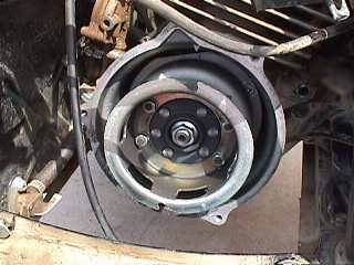 the grounding wire. Next remove the recoil starter, by the three bolts. |