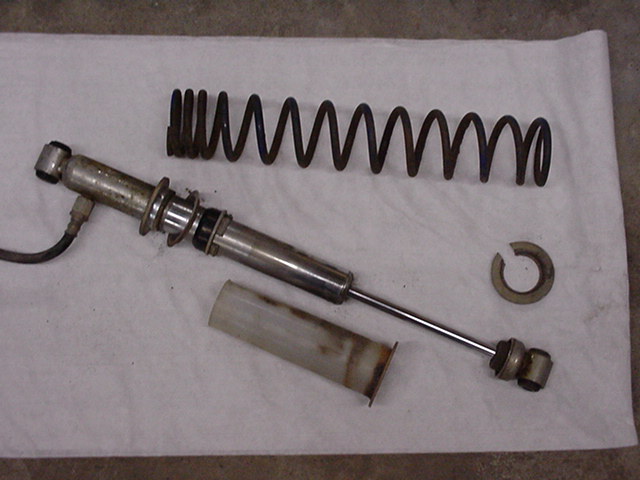 You then compress the spring and remove the retainer, you have to separate the plastic wiper from the plastic spring guide before the spring will come all the way off.