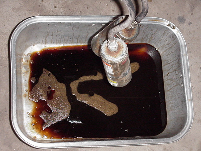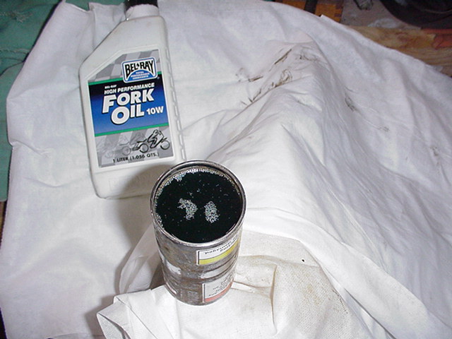 Nasty old oil is then drained out I like to suspend the shocks upside down so the oil can drain out over night.