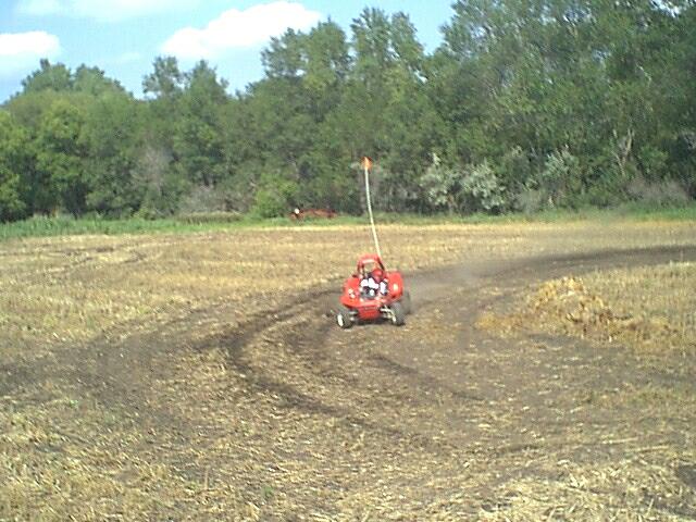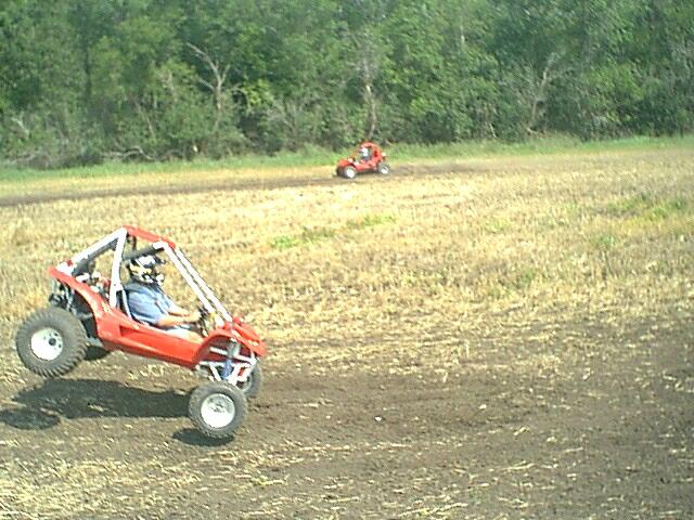 Several people made the trip to Pilotcat's house to check out his track unfortunately I couldn't make this trip but Pilotcat was nice enough to send me these pictures just to show me what I was missing :-) Pilotcat plans to have another roundup at his place sometime around 8-25-00 I should be able to make that one and join in on the fun. Looks like Supersail almost did the old lawn dart over this jump, Always blip the throttle when coming off a jump to keep the nose up. From what I can see you could hit this jump WOT.