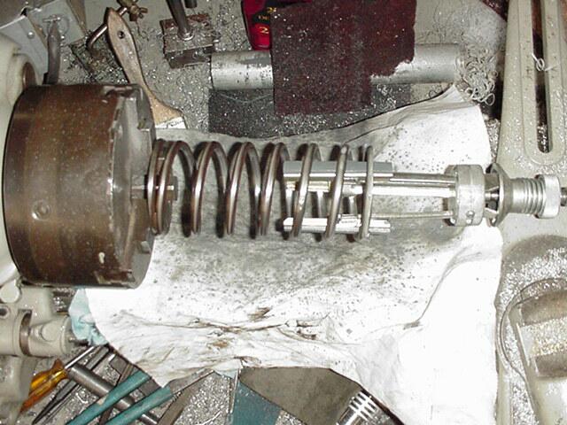 For a faster up shift I am trying to reduce the friction of the plastic spacer and the spring tension at the same time by using a cheap 3 finger hone and a lathe I reduced the springs inside diameter enough where the plastic spacer would slide into the spring with just a little resistance and not a real tight press fit.