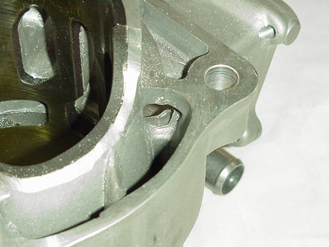 The time has come for another cylinder, my cylinder is on its last Honda bore, the piston to cylinder clearance has grown after wearing out 3 pistons to provide a .0039 piston to cylinder clearance, Honda recommends .0031 I could bore the cylinder and go with a wiseco but no thanks, my cylinder has served my engine well, using the much more stable Honda cast pistons it lasted 14 years, I rather have my new spare cylinder ported and save my old cylinder as a spare, I might have the cast liner plated and built up taking it back one bore size but for now I will be going with the new, Macdizzy ported my last cylinder and it ran great and provided me with the reliability I wanted, the wear of the rings was perfect and even all the way around, I would like to take it up a notch for slightly more power if I can retain the reliability. Knowing Martin Saint (Sainty) of Stealth Engineering was moving to the US from England sometime in 2003 I decided to have him evaluate my current cylinder and design me something with slightly more power. The cylinder out of the box is pretty rough but not only will just the casting flaws be removed Martin will use the latest 2 stroke engineering software to design a engine that will not only perform it will be reliable and tuned to the pipe and RPM I desire.![]()