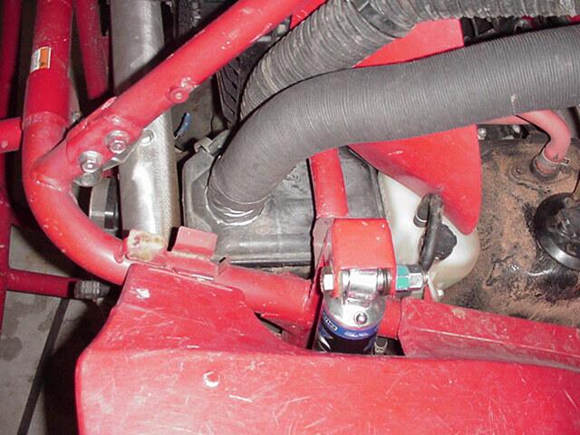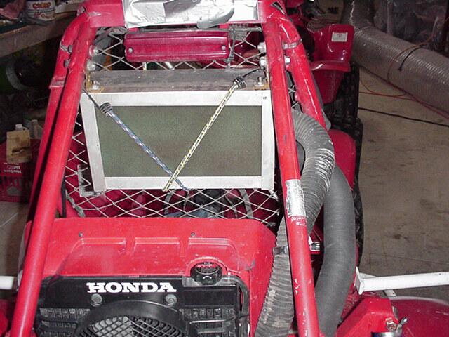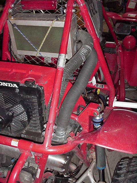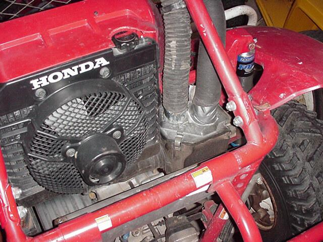 Pilot Air Box Modification I added this pre filter setup after riding at The Badlands several times this past summer and going through 1 air filter per day of riding, Most day's I could have used 2 filters. So I built this pre filter setup so it would catch 90% of the dirt and dust before it got to the main filter and keep air flow to the engine the same as running a clean filter all weekend. So far it has been working great I now can go all weekend without changing the main filter. The main air filter has almost no dirt on it at all, The pre filter gets washed and oiled just like the main filter. As you can see in the top picture the primary air box is located above the radiator and below the tail tight I have only the top mounts installed at this time because I am thinking of cutting down the size of the box. You also can see the oiled UNI filter foam I got from Dennis Kirk.In the next 2 picture's you can see the second hose that was cut into the stock air box lid doubling the intake volume.