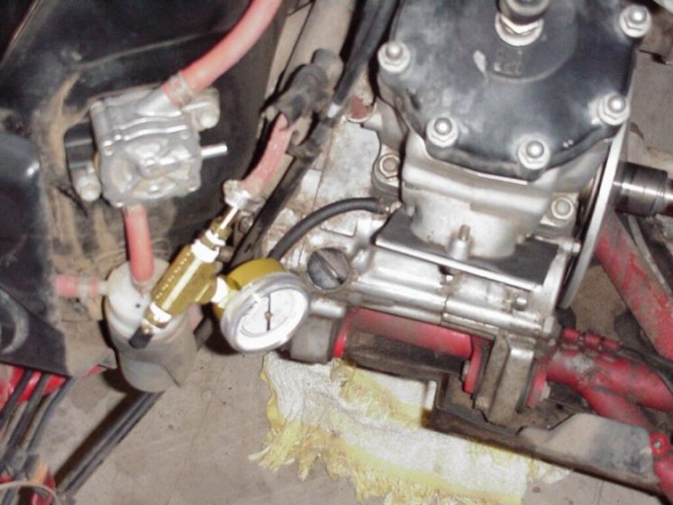 Above you will see the exhaust blanked off and the pressure tester installed in the vacuum line that goes to
