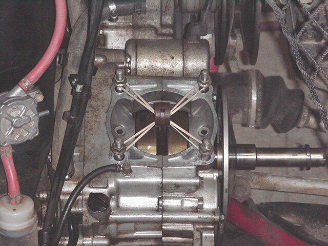 With the cylinder, head and pistion removed I put rubber bands through the rod and attach them