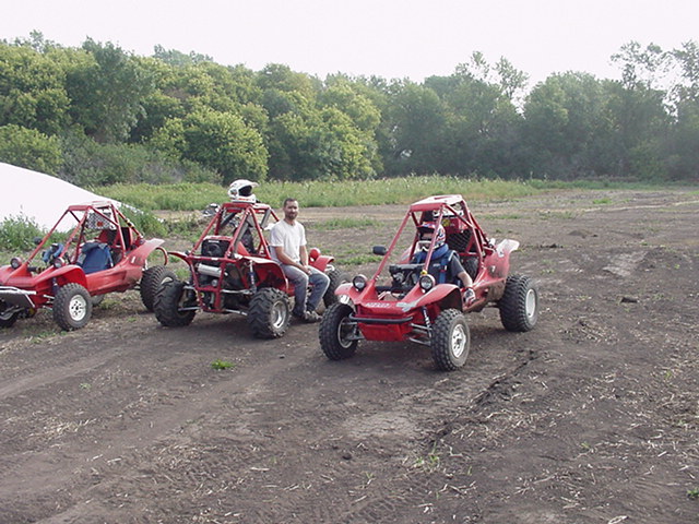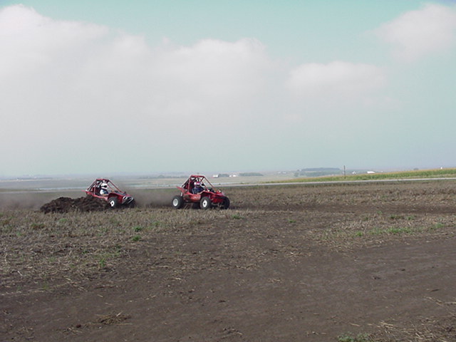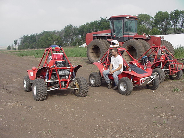 8-26-00 at Pilotcat's house near Watertown SD. Pilotcat made a track for us to ride on but due to the lack of rain the track was a bit dusty, we tried using Pilotcat's water truck to water the track but that only lasted about 4 lap's then back to the dust :-( Pilotcat and Pilotman taking a break Pilotcat and Pilotman