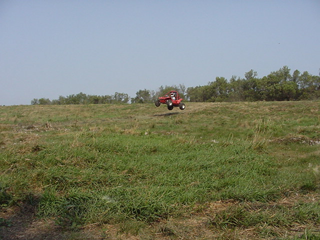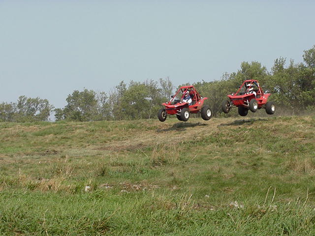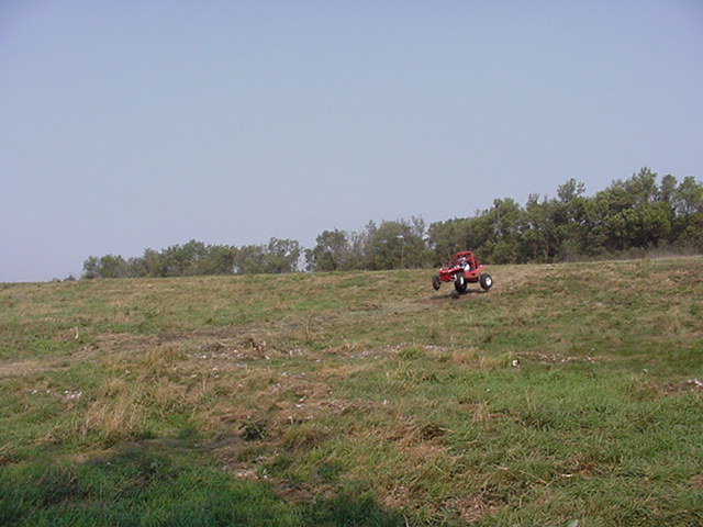 Day 2 we moved over to a pasture with rolling hills and laid out a new track. Pilotcat and Pilotman going over a big down hill jump WOT