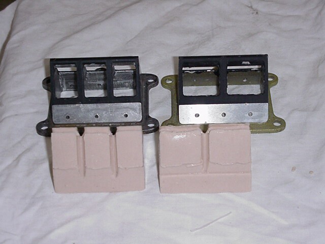 Here is my first attempt at using regular fiberglass resin, I used too much hardener and they generated so much heat they actually started to melt the wax mold, I also tried to carve out part of the pink stuff to save time later on when it came time to carve out the final stuffer, if you look close at the one on the left you can see that it warped a little when I poured the wax into the mold, the next set will be made solid so they maintain the proper dimension. I put a few bolts in in the resin so I could remove them from the wax, worked out pretty good after they were out I just backed the bolts out with a wrench.