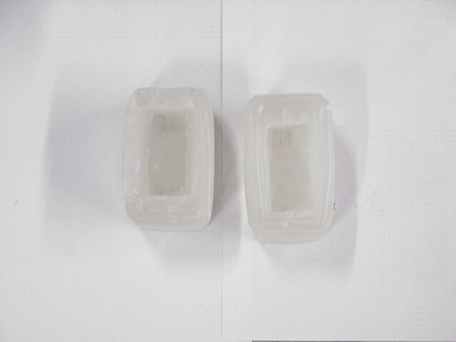 I found this stuff at Wal-Mart you mix with water to make a mold, so I wrapped duct tape around the reed cages and mixed some up, you only have about 30 seconds from the time you pour the water in to work with this stuff after 31 seconds it is too late, using cold water will give you about 40 seconds, one package cost about $2.50 and is just enough to make to stuffer impressions like below.After about 10 minutes you can remove the tape and pop them out of the mold be ready to put them right into the wax mold and cover with wax because as they dry out they will shrink