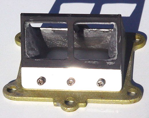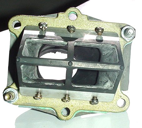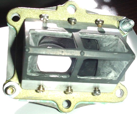 This page will load slow, use this time to go get something to drink :-) These are just more pictures I took of the cage, remember at this stage it is not complete, these pictures will not interest most of you, it will how ever be useful to people that are really interested in making their engine perform better, modifications like this and close attention to detail are what makes engines stand out and perform better than the ones where guys just bought the go faster parts and bolted them on. Ever see a guy replace his reeds and just put the cage back in? Why not spend a hour modifying your reed cage to perform better and wile you have the manifold off match its mating surfaces to the reed cage stuffer and match the carb to the intake manifold removing the flow restrictions that are built into the part and not normally removed during normal production processes, you do not need a ported cylinder to increase power in a stock engine, just cleaning up the casting flaws and matching ports can make a large increase in power but you also need to start removing the restrictions starting at the air box and all the way through the engine and exhaust![]()